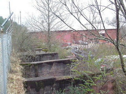 This shows the pier structures that appear to have supported a rail track.  It is not known how these were used.